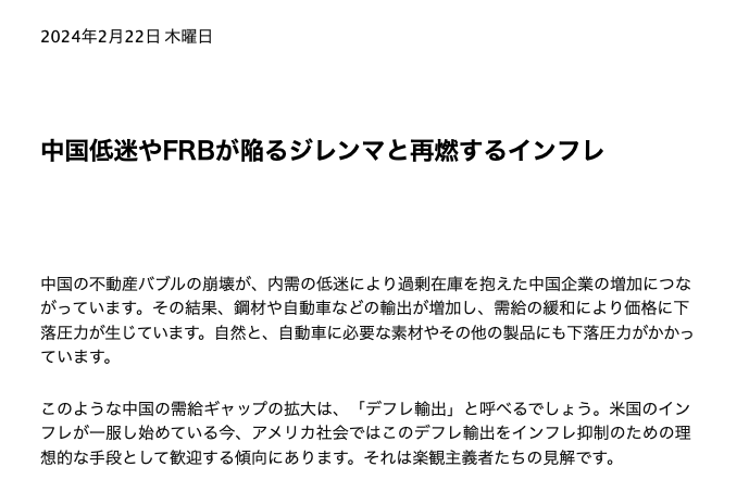 中国低迷やFRBが陥るジレンマと再燃するインフレ