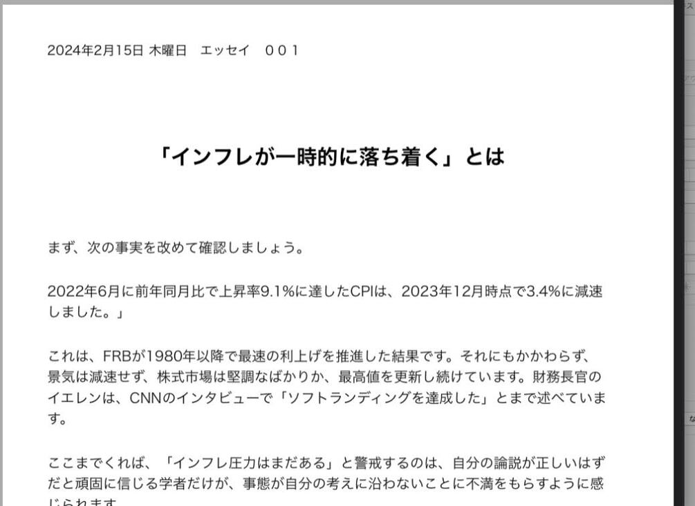 エッセイ001 「インフレが一時的に落ち着く」とは
