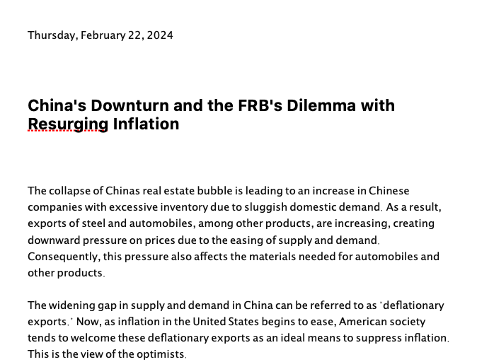 China's Downturn and the FRB's Dilemma with Resurging Inflation