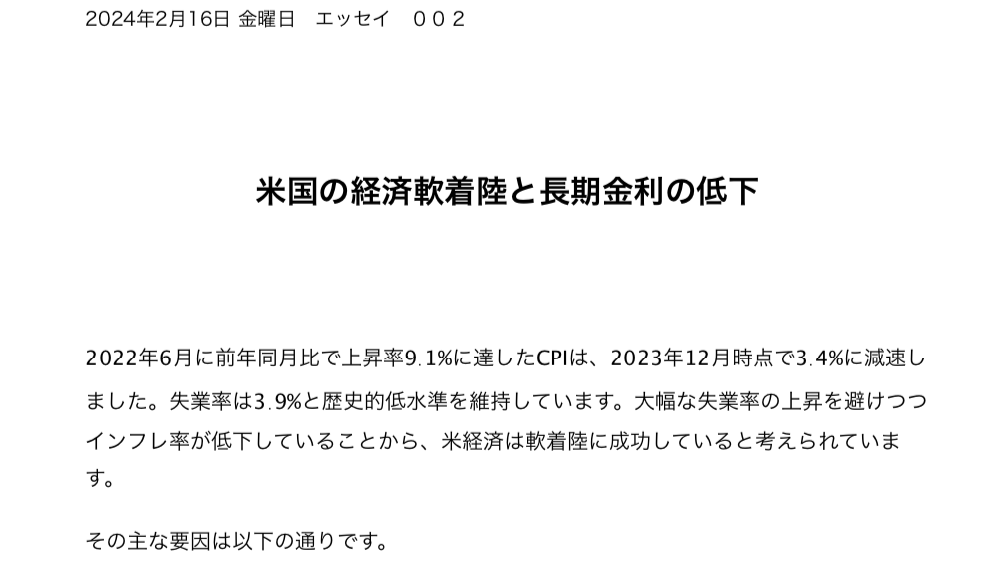 The Soft Landing of the U.S. Economy and the Decline in Long-Term Interest Rates