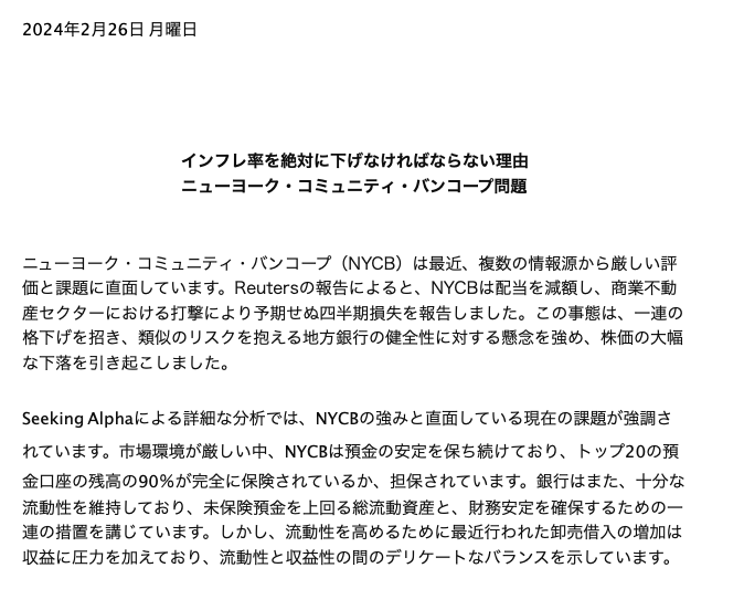 インフレ率を絶対に下げなければならない理由 ニューヨーク・コミュニティ・バンコープ問題